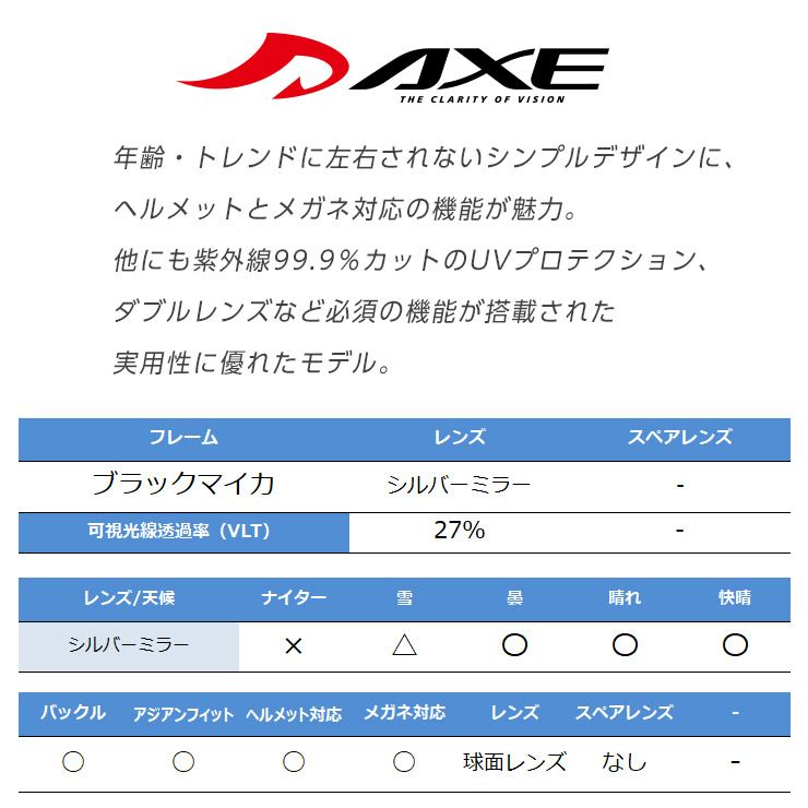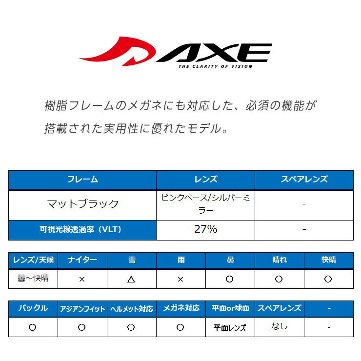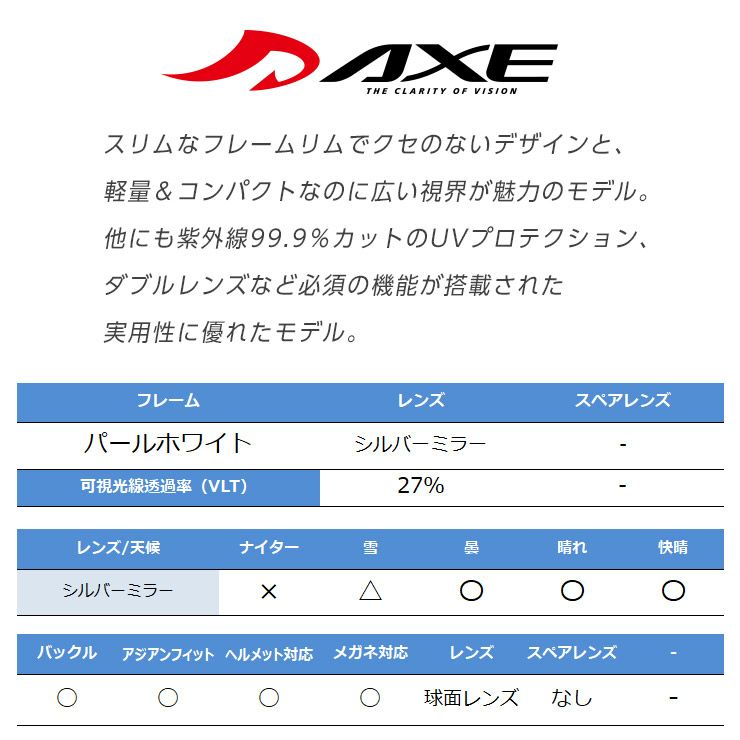 他の画像を見る AXE/アックス AX888-WMD シャイニーブラック レンズ:ライトピンクベース/シルバーミラー 通常価格 ¥ 13,200 のところ セール価格 ¥ 9,889 税込 在庫切れ 詳細を見る お気に入りに登録する