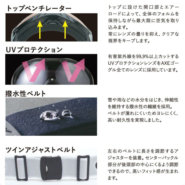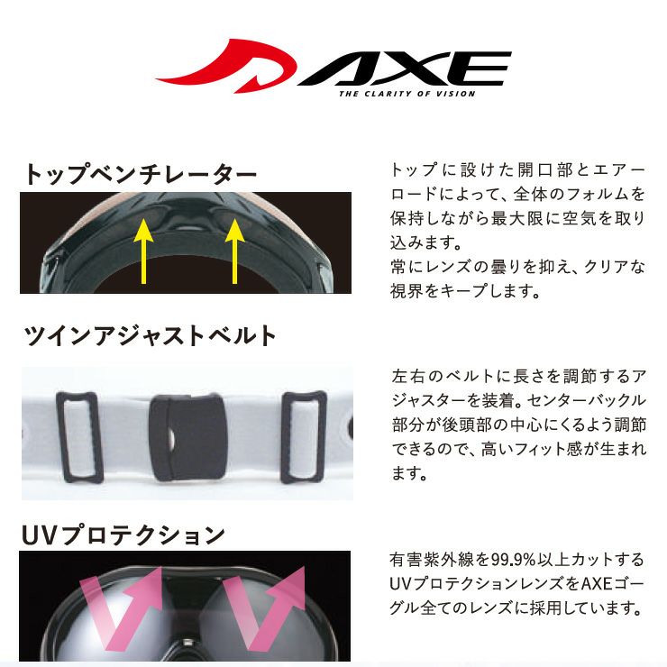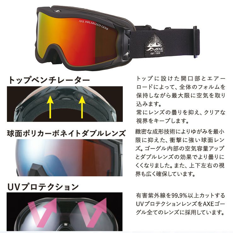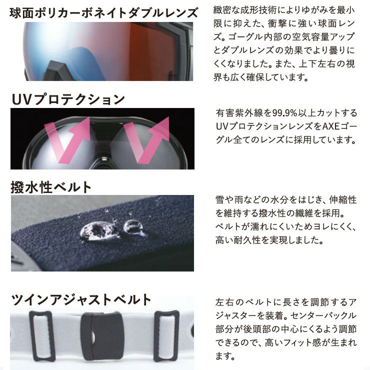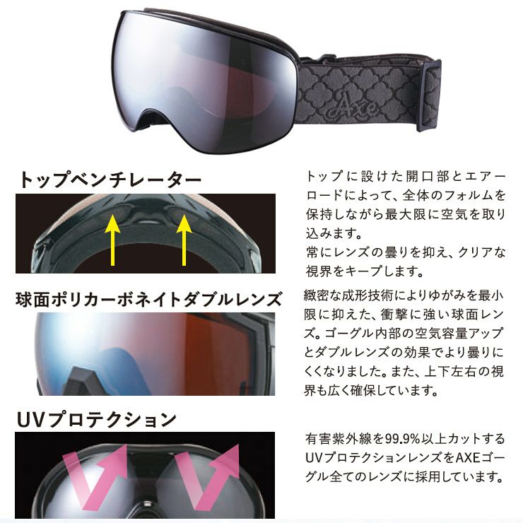 他の画像を見る AXE アックス スノーボード ゴーグル スキー AX800-WCM カラー:マットブラック レンズ:スカイブルーミラー スキーゴーグル 通常価格 ¥ 12,100 のところ セール価格 ¥ 8,789 税込 在庫切れ 詳細を見る お気に入りに登録する