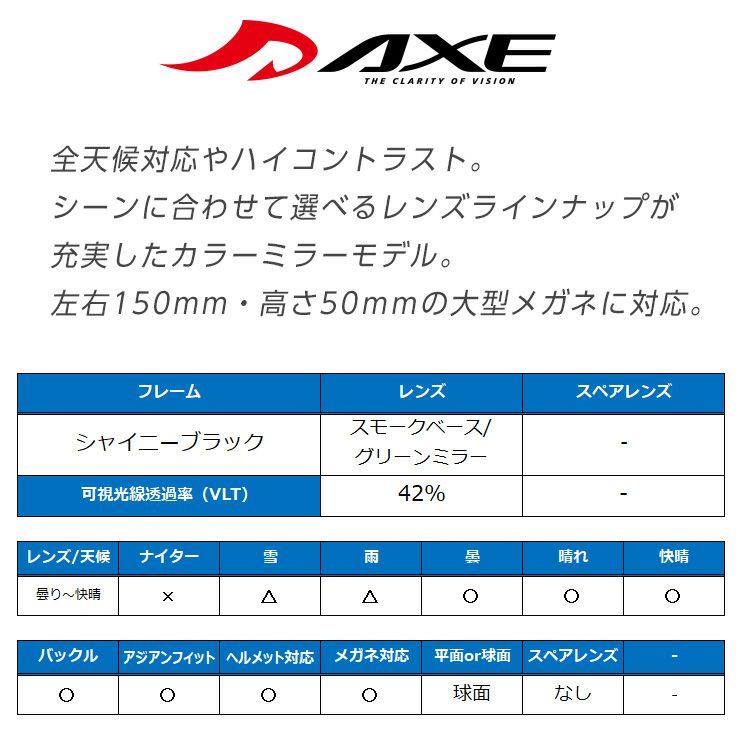 他の画像を見る ヘルメット及びメガネ対応 24-25 AXE アックス AX888-WCM シャイニーブラック レンズ:スモークベース/グリーンミラー ゴーグル スノーボード メガネ対応 ヘルメット対応 通常価格 ¥ 14,300 のところ セール価格 ¥ 10,989 税込 在庫切れ 詳細を見る お気に入りに登録する