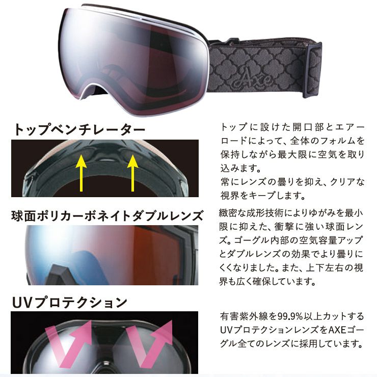 AXE アックス OMW-675 パールホワイト シルバーミラー ゴーグル スノーボード メガネ対応 ヘルメット対応