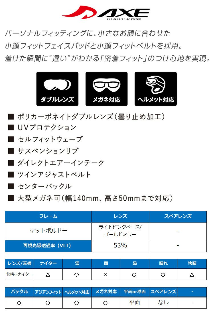 AXE アックス スノーボード ゴーグル スキー AX 800-XS マットボルドー レンズ:ライトピンクベース/ゴールドミラー