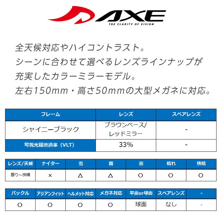 ヘルメット及びメガネ対応 24-25 AXE アックス AX888-WCM シャイニーブラック レンズ:ブラウンベース/レッドミラー ゴーグル スノーボード メガネ対応 ヘルメット対応