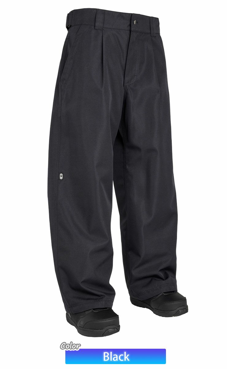 90年代後半のスノーボードの定番、防水バギージーンズです。プリーツ、ベルトループ、調節可能なウェストシンチ、4つの安全なポケット、そして雪を防ぐレッグゲイターまで付いています。高デニールの生地は10,000mmの防水性を持ち、耐久性にも優れています。