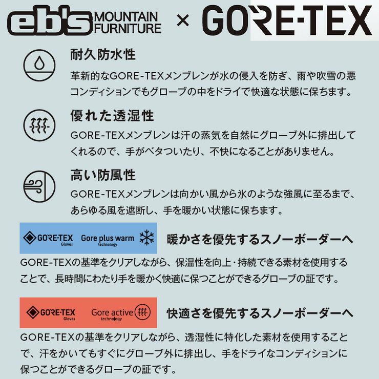ebs 2025 高性能なGORE-TEXグローブ 正規品 24-25 eb's エビス GORE-TEX EXCLUSIVE ゴアテックス エクスクル-シブ スノーボード グローブ ミトン スキーグローブ