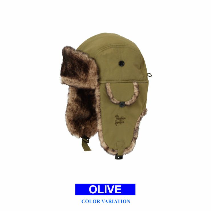 中綿とファーで耳や顔周りまで暖かい撥水フライトキャップ