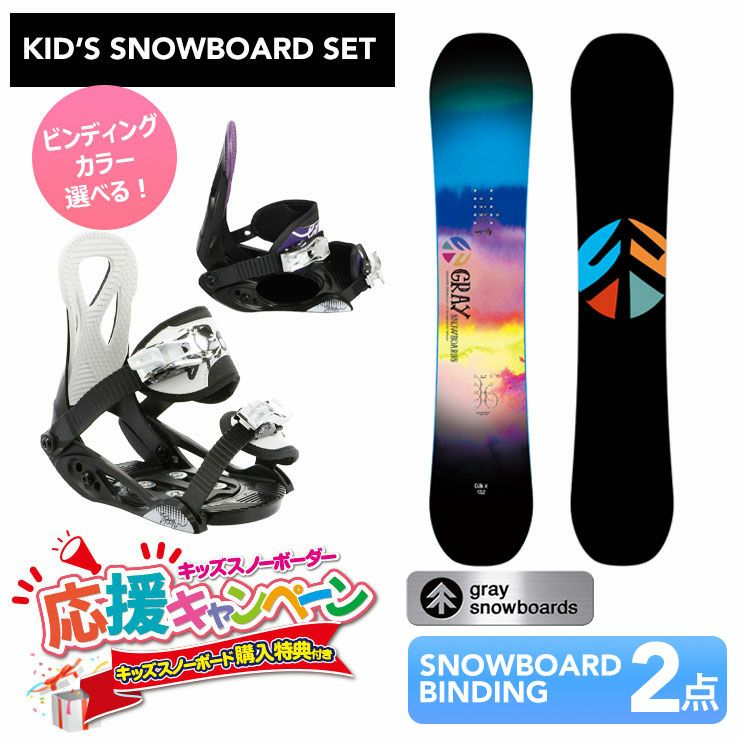 劇的にフリーランが上手くなるGRAYのキッズボード! 【キッズ スノーボード2点セット】GRAY CUB-X スノーボード & PH-05 ビンディング 子供用 キャンバー