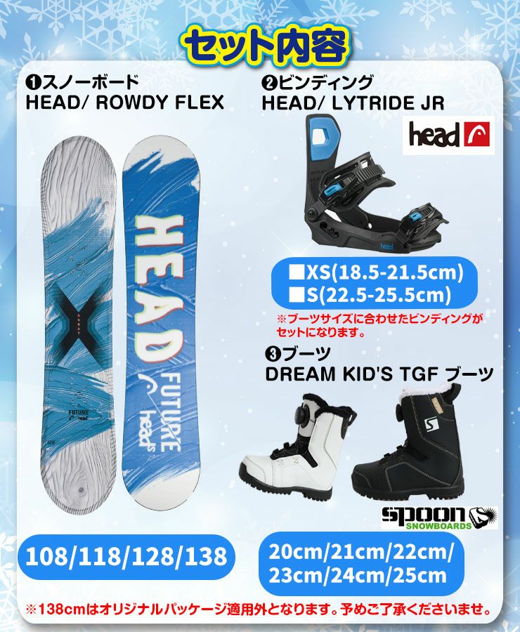 他の画像を見る スノーボード ビンディング 3点セット 【キッズスノーボード3点セット】HEAD ROWDY FLEX スノーボード & HEAD ビンディング & SPOON ブーツ 子供用 セール価格 ¥ 53,669 税込 詳細を見る お気に入りに登録する