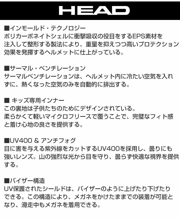 他の画像を見る KIDS JUNIOR HEAD ヘッド キッズ ヘルメット HEAD/ヘッド MOJO Visor 通常価格 ¥ 19,250 のところ セール価格 ¥ 13,090 税込 カートに入れる お気に入りに登録する