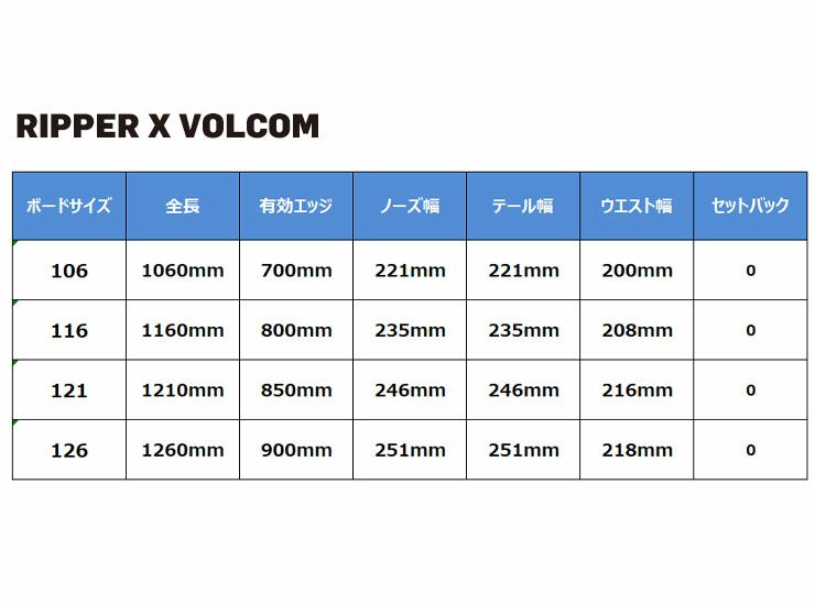 ユース向けのハイパフォーマンスパークボードRipperをベースに、 一目でVolcomと分かる大胆なグラフィックを採用。 「Ripperはスノーボードの基本に忠実にデザインされたモデルです。  取り回し易く、遊べる板になっていますが、高いレベルを目指す  ユースライダーにもお勧めできる仕上がりになっています」