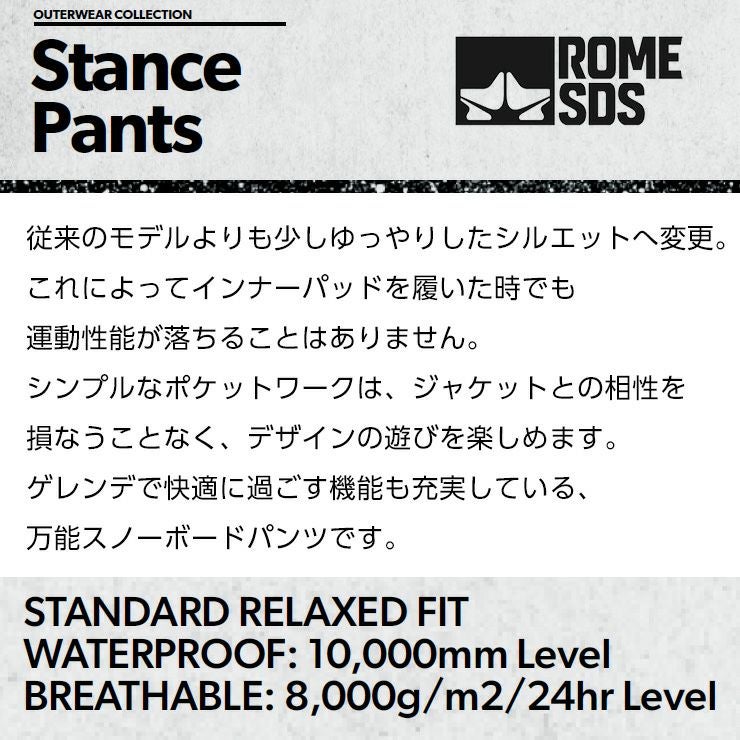 正規品 23-24 ROME SDS ローム STANCE PANTS スタンスパンツ メンズ スノーボードパンツ スキーパンツ