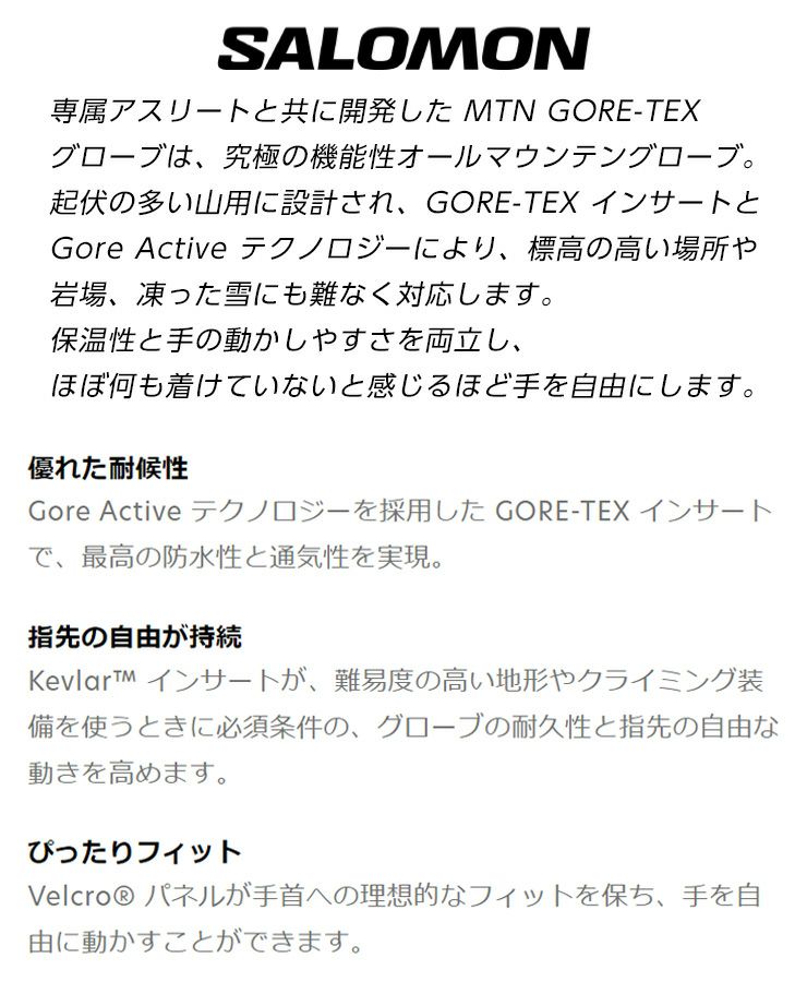 正規品 2024 スノボーグローブ SALOMON/サロモン MTN GORE-TEX U 2024