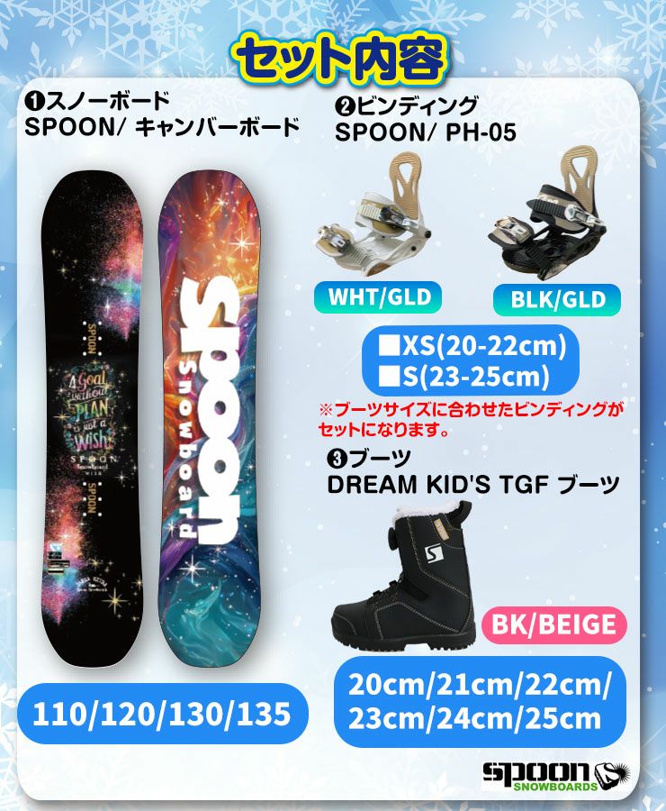 スノーボード ビンディング 3点セット 【キッズ スノーボード3点セット】SPOON WISH スノーボード & PH-05 ビンディング SPOON ブーツ
