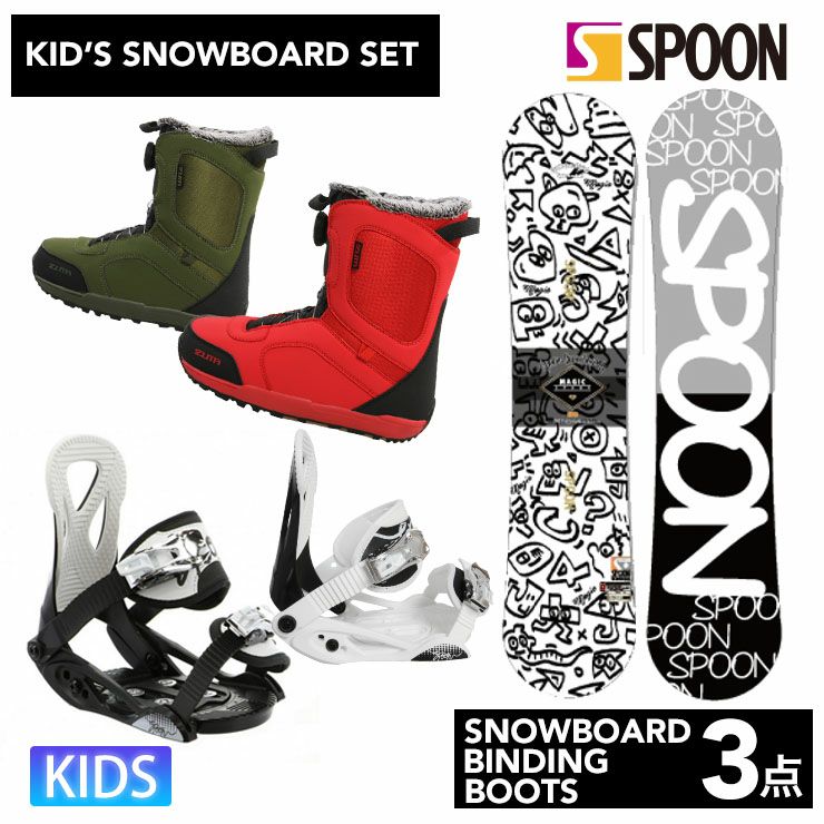 キッズ スノーボード3点セット SPOON MAGIC スノーボード & PH-05 ビンディング ZUMA ブーツ