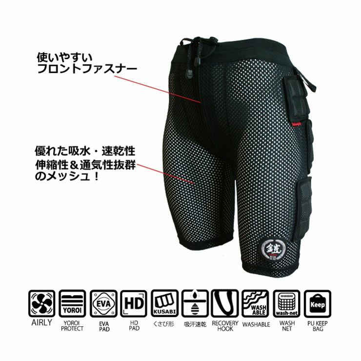 転んでも安心!動きやすくて軽い、キッズ専用プロテクターショーツ YOROI/ヨロイ AIRLY SHORT WAKA Ⅱプロテクター ヒップパッド