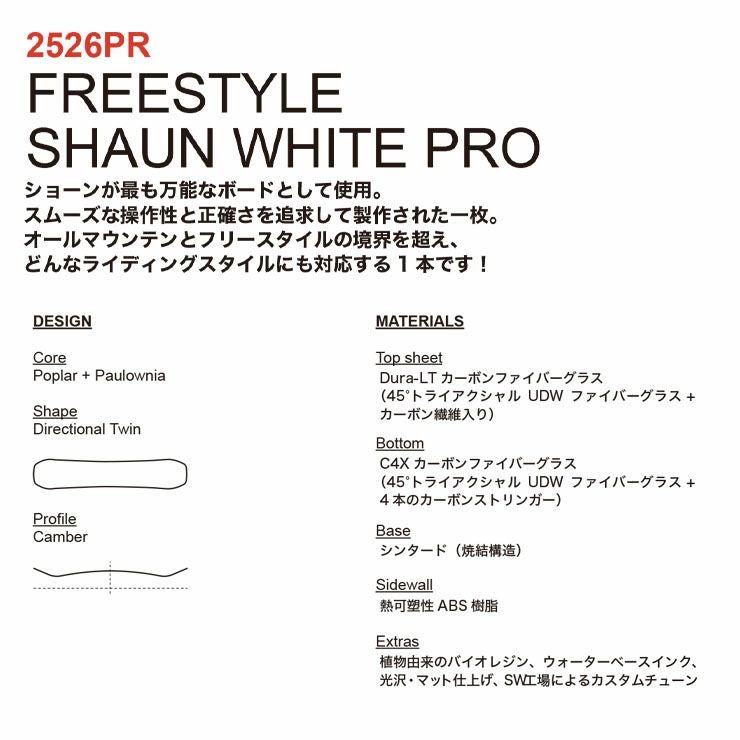 他の画像を見る 予約商品 JUNIOR 【25-26モデル】 WHITESPACE/ホワイトスペース Freestyle Shaun White Pro Youth 130/136 通常価格 ¥ 86,900 のところ セール価格 ¥ 86,900 税込 詳細を見る お気に入りに登録する