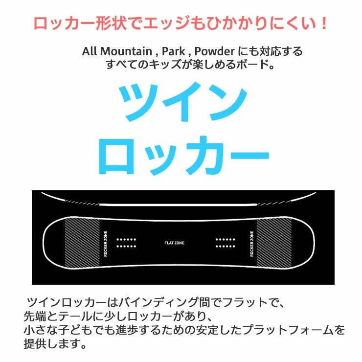 Lowrideは、最小のライダーでも使用できるように作られています。 ツインロッカーはバインディング間でフラットで、先端とテールに少しロッカーがあり、若いライダーが進歩するための安定したプラットフォームを提供します。 二次サイドカットは、ターンの開始/終了とエッジグリップを改善します。 ボードフレックスは小さな子供向けに最適化されており、ターンを簡単に開始できます。 『Lowride』は、レベルアップとに重点を置いたライダー向けのキッズボードです。 オールマウンテン・パーク・パウダーにも対応するすべてのキッズが楽しめるボード。