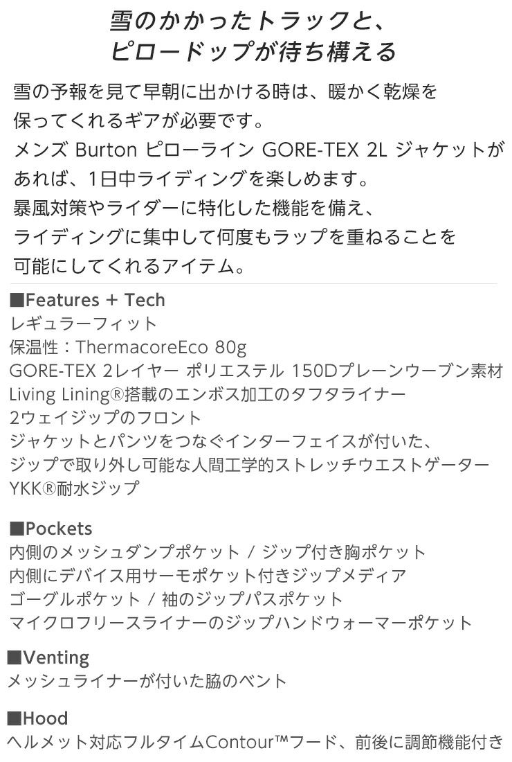 24-25 バートン 正規品 2025 BURTON バートン Pillowline GORE-TEX 2L Jacket ピローライン ゴアテックス ジャケット メンズ スノーボード スキー スノボー ウェア