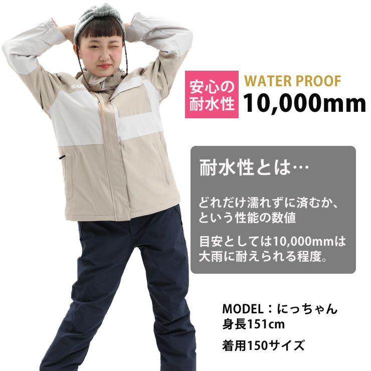 【機能】耐水圧:10000mm/ジャケット襟裏発熱・背当発熱素材/最大15cmのサイズ調整機能付・サスペンダー脱着式
