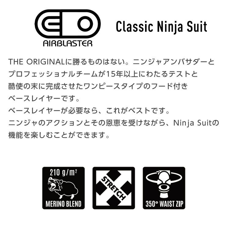 THE ORIGINALに勝るものはありません。すべての始まりとなったワンピース型フード付きベースレイヤーです。 ニンジャアンバサダーとプロチームによる15年以上のテストと酷使を経て、事実上完璧に開発されました。ベースレイヤーを必要とするならば、 これはまさにベストです。オリジナルのニンジャスーツの機能性はそのままに、ニンジャとしてのアクションやフリンジベネフィットを楽しむことができます。