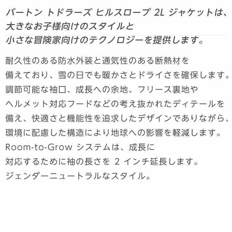 他の画像を見る KIDS BURTON/バートン Toddlers' Hillslope 2L Jacket 通常価格 ¥ 16,500 のところ セール価格 ¥ 11,550 税込 カートに入れる お気に入りに登録する