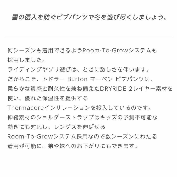他の画像を見る KIDS BURTON/バートン Toddlers' Maven 2L Bib Pants 通常価格 ¥ 16,500 のところ セール価格 ¥ 11,550 税込 カートに入れる お気に入りに登録する