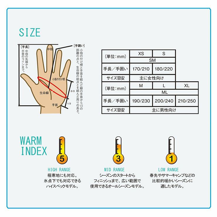 4方向に伸縮するミディアムウエイトの指切タイプインナー