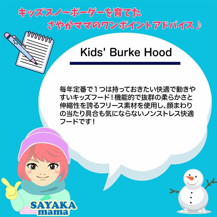 毎年定番で1つは持っておきたい快適で動きやすいキッズフード!機能的で抜群の柔らかさと伸縮性を誇るフリース素材を使用し、顔まわりの当たり具合も気にならないノンストレス快適フードです!